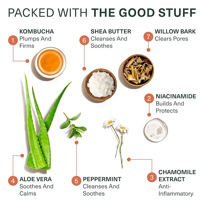 Botanic Tree Kombucha & Glycolic Acid exfoliating face wash for Aging skin - Kombucha Lipofilling effects and skin healthy probiotics and antioxidants