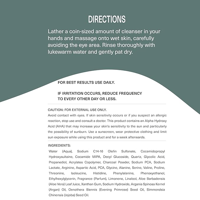 - Men's Exfoliating Cleanser For Smooth & Clean Skin. Great for sensitive, oily and breakout prone skin. Formulated with 2.5% glycolic & salicylic acid and Activated Charcoal. Reduces breakouts and dark spots. Gentle yet effective glycolic peel removes makeup & oil without drying out your skin. Works as a cleanser and toner, to resurface and nourish aging skin.