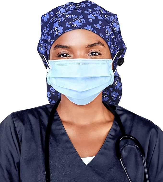 - Adjustable Elastic Band with Ponytail Pouch Design -- the ponytail pouch helps you adjust your hair,makes you look professional and brisk.Ribbons over the pony-pouch provide extra security for keeping hair in place,maintain your hairstyle during work and keep your head clean&neat.Bouffant cap for long hair fit Large or Small Head, more adorable to wear. They are natural, breathable and very comfortable to wear all day;Keeps your forehead dry and comfortable