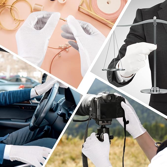 - Multifunctional Helper: these cotton gloves are multifunctional helpers in your daily life, keep your hands delicate and clean during house cleaning, driving, and shopping, work as restaurant serving gloves, white costume gloves, spa gloves, etc.