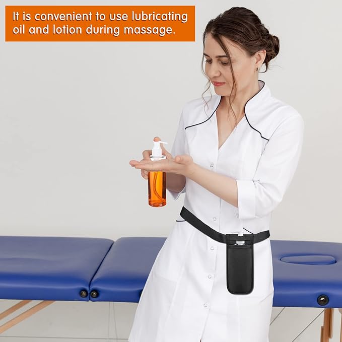 - Pleasant to Wear: the massage bottle holster comes with an adjustable waist belt, easy clip and slide adjuster for easy installation; The pocket opening has a cord to prevent the bottle from falling and can adjust the waistband to fit most waists