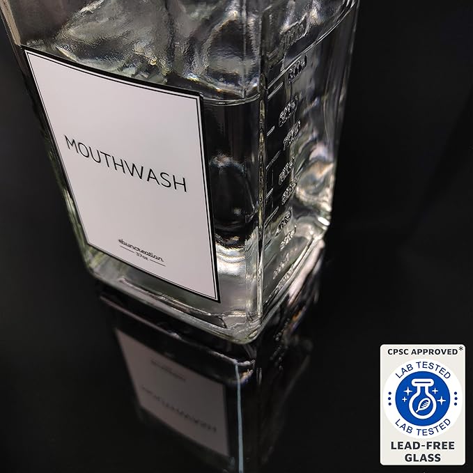 - Enhance the look of your bathroom with an elegant mouthwash dispenser - Made from transparent, thickened glass, this mouthwash container combines elegance with durability, resisting fading and chipping over time; Its timeless design seamlessly complements any bathroom decor, and the included handcrafted wicker coaster protects surfaces from water damage