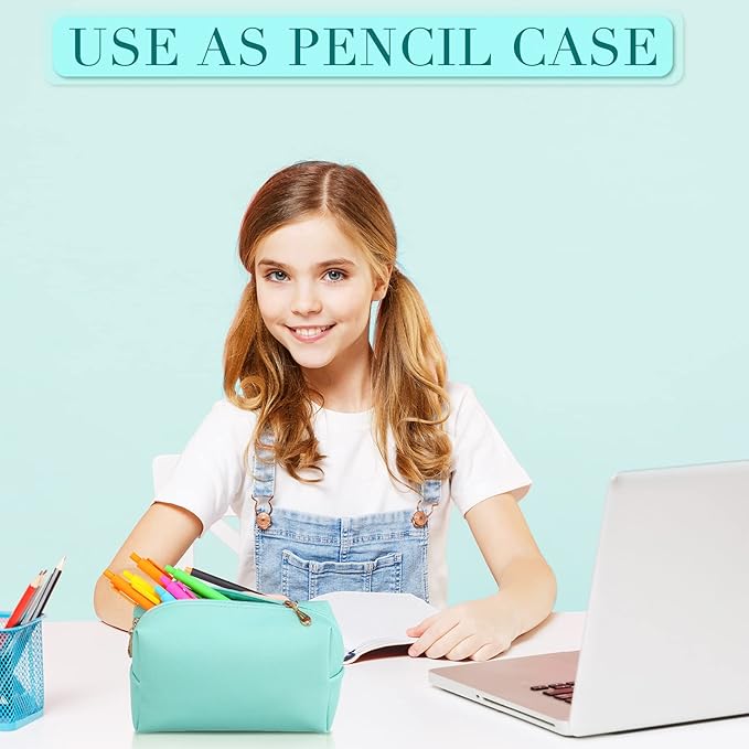 Sanwuta 9 Pcs Preppy Makeup Bag PU Leather Cosmetic Bag Makeup Pouch Plain Waterproof Toiletry Organizers for Traveling Preppy Travel Purse End of the Year Teacher Gifts Bulk(Green)