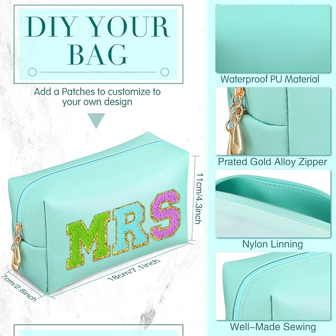 - Waterproof and Easy to Clean: preppy makeup bag is made of PU leather, which is waterproof, light and soft to avoid the inside things getting wet; Besides, you do not need to worry about it getting dirty, which is easy to clean; Just wipe the stain with a damp cloth; The leather toiletry bag is blank, does not contain letter patches; The patches in the pictures mainly show that the product can be DIY by yourself