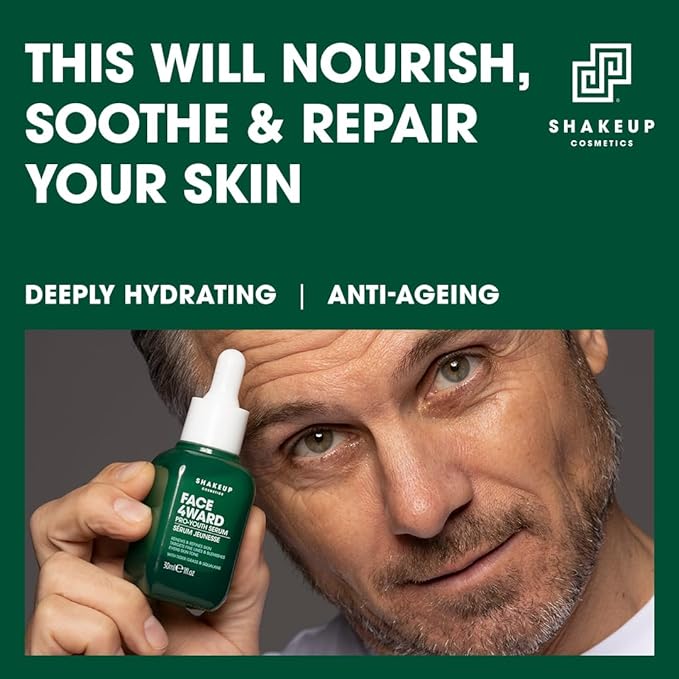 Mens Skincare Routine with Free Wash Bag, including Daily Face Wash, Clarifying Toner, Anti-Ageing Serum, Daily Moisturiser, plus Wash Bag. Aka. SHAKEUP FACE 4WARD DELUXE KIT