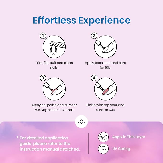 - 【SOAK OFF NAIl Lamp】: Beetles color gel polish needs to be cured under uv led nail lamp. Base and Topcoat required. Average for LED 60-120 secs.