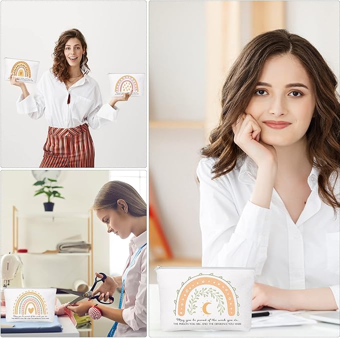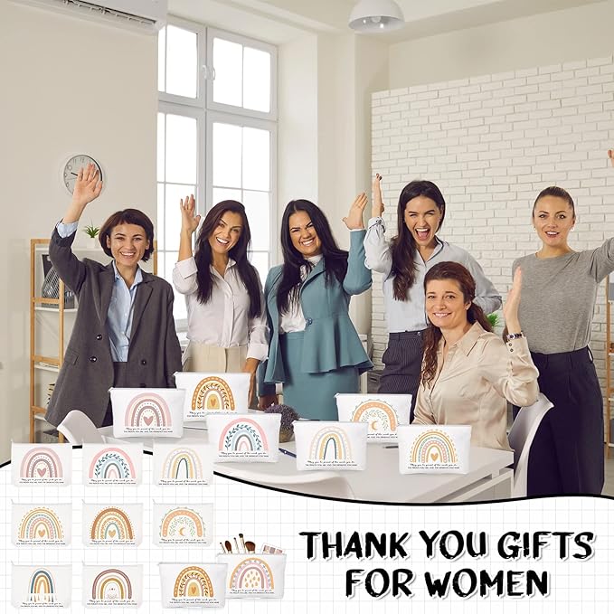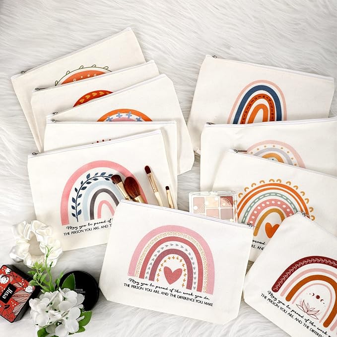 Sieral 30 Pcs Rainbow Canvas Makeup Bags Bulk Employee Appreciation Gifts Graduation Inspirational Cosmetic Bags Thank You Gifts for Teacher Secretary Coworker Volunteer Nurse(Delicate)