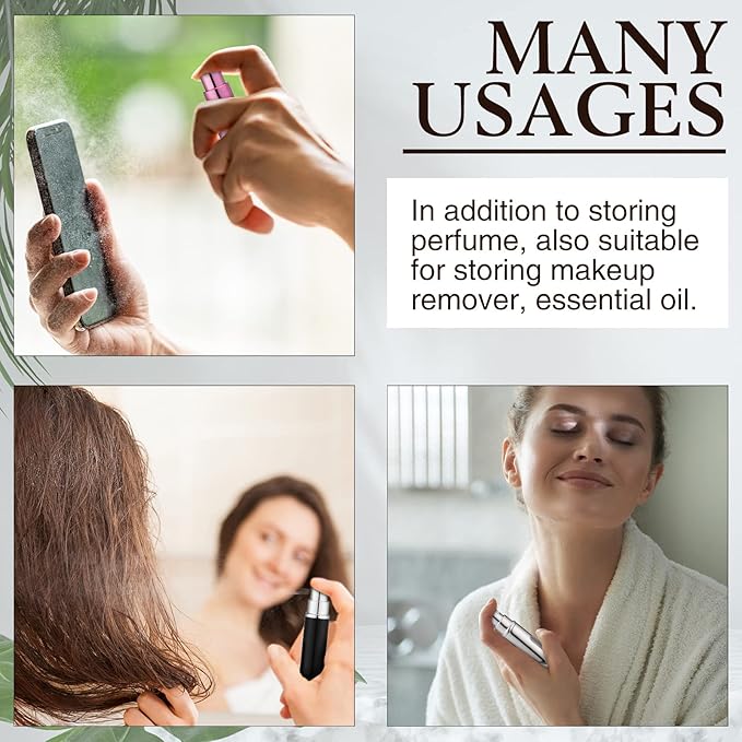 - Quality Material: the shell of the perfume spray bottle refillable is made of quality aluminum, the interior is made of glass, the shell can prevent the inner bottle from being scratched or deformed, withstand long term use; The lid is tight and will not leak easily, reducing the waste of perfume; Perfume dispenser pump transfer tool is made of plastic, lightweight and portable, convenient for you to use