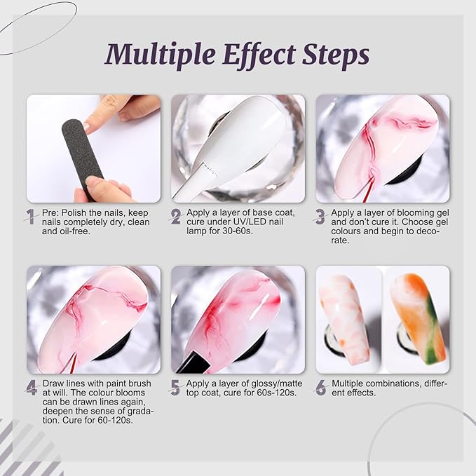 - Versatile Effects: Explore versatile effects with our full color range of gel nail polish set, offering three distinct finishes. Achieve vibrant nails with a smooth, glossy shine or opt for a soft velvet effect with the matte finish. Our easy-to-apply blooming nail gel works seamlessly with all nail art systems, making it ideal for both experts and beginners. Perfect for creating designs like marble, natural stone, watercolor, floral prints, tie-dye, gradients, and more. This gel polish set makes a thoughtful gift for wives, mothers, and friends alike!