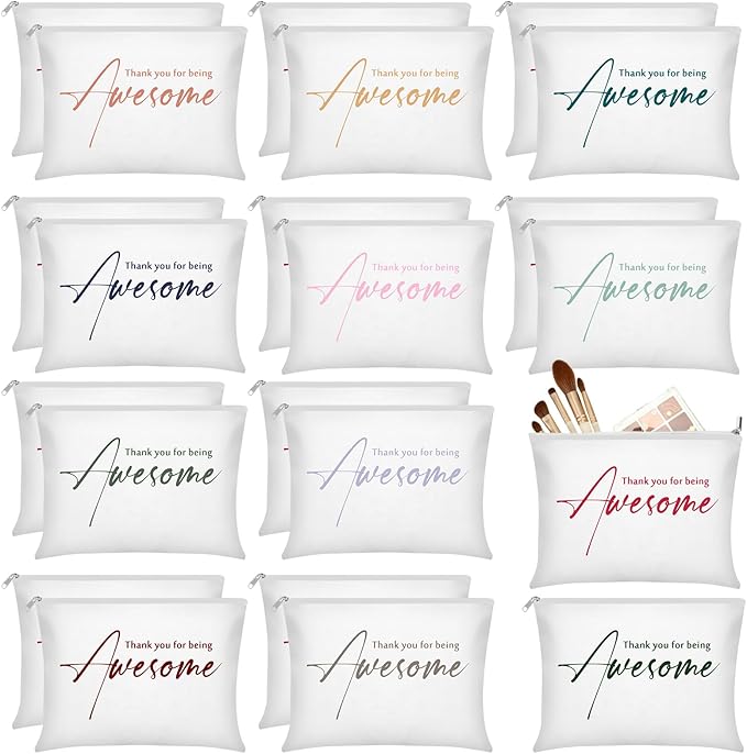 Buryeah 24 Pcs Thank You Cosmetic Bags for Women Thank You for Being Awesome Makeup Bags Bulk Employee Appreciation Pouches for Student Teacher Team Coworker Assistant Gift(White)