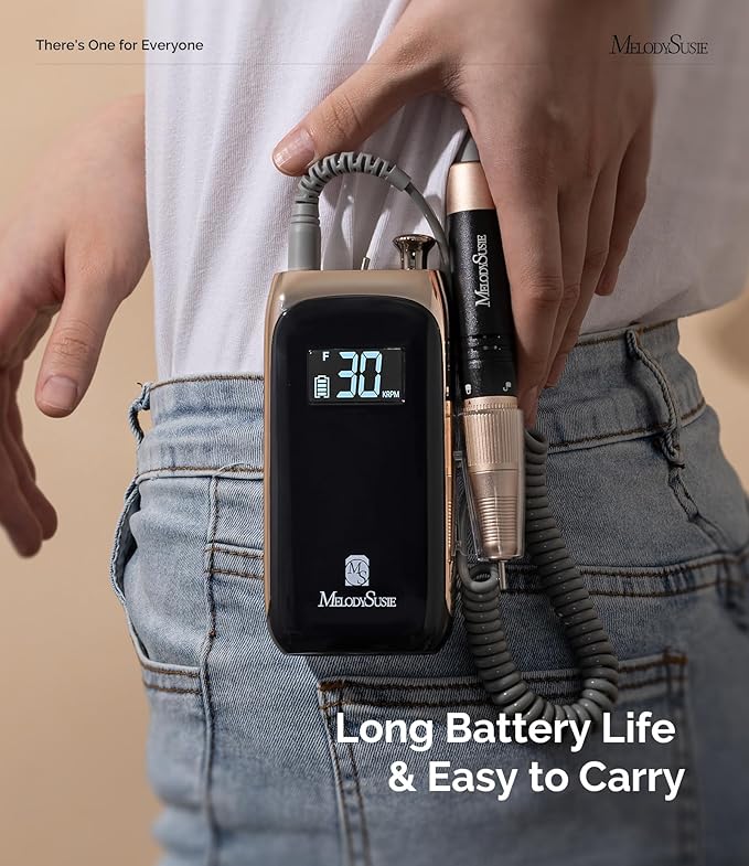 - Rechargeable and Cordless - Built-in 5100mAh battery capacity, which can last around 9-13 hours after 2.5 hours fully charged, including short circuit protection, temperature control, non-slip, bit lock system, and more. Let you enjoy acrylic nail design anytime anywhere.