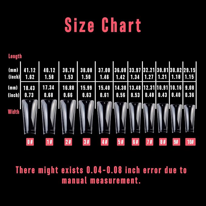 - 👍VARIOUS SIZES OPTIONS: Our nail tips come in 11 different sizes to cater to a variety of finger sizes, especially friendly for those with wide nail beds. We have designed these tips to provide half coverage, making it easier for both professional salons and DIY users to create stunning manicures.