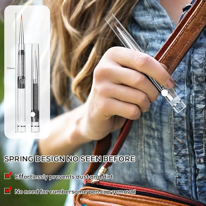 - Unique Spring Design- No need for caps. By pressing, the tips retracts into the brush handle, preventing it from getting dirty.