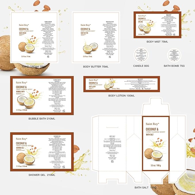 - 【 Sweety and Pleasant Scent Spa Gift Basket】Saint Roy sweet almond bath gift set ,Shower Bath Kit with Home Bath Pampering Package basket. A versatile basket After you use up our bath products inside, the basket with handle can also be reused in many different ways, such as storing various items in a powder room, bathroom or bedroom. Our Relaxing at Home Spa Kit Scented - Coconut & Honey Almond with Large Basket .