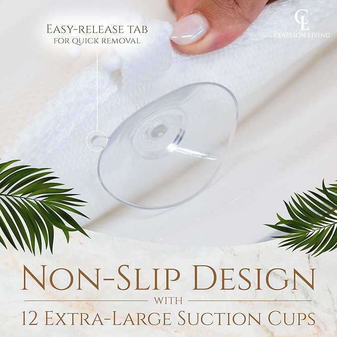 - CONVENIENT CLEANUP: With 2 hanging hooks included with each order, our full-body bath mat attaches to wall tile for easy draining or storage.