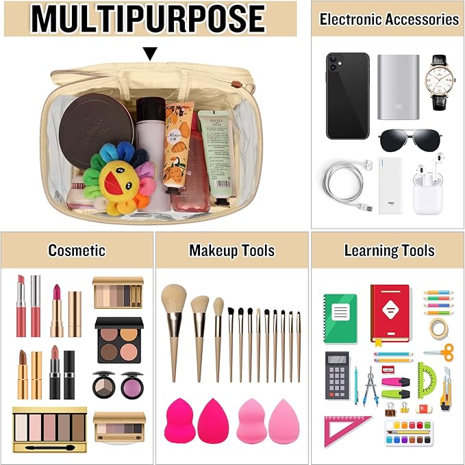 - ❤【Glitter Chenille Letter Clear Bag】Preppy makeup bag pouch has gold glitter letter patches and the letters are made of delicate towel embroidery and non-woven fabric. Firmly stained on the bag, you don't have to worry about them falling off. These colorful letters have a gold glitter border to make your clear makeup bag look very bright and vivid!