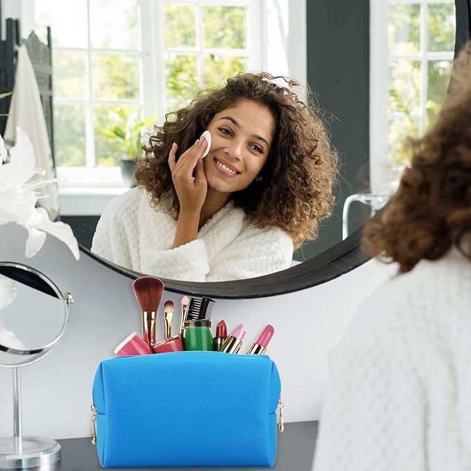 Sanwuta 9 Pcs Preppy Makeup Bag PU Leather Cosmetic Bag Makeup Pouch Plain Waterproof Toiletry Organizers for Traveling Preppy Travel Purse End of the Year Teacher Gifts Bulk(Blue)