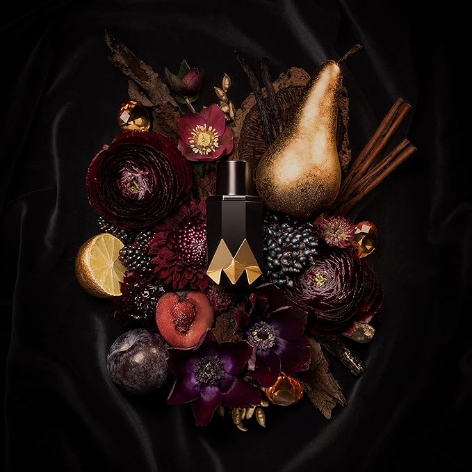 - FULL OF ELEGANCE. With a gold inlaid crown coin on the cap and a semi-transparent bottle finish, the bottle follows the shape of the faceted gold M to create a bespoke gem-inspired piece. Includes a soft-touch box material with gold foil accents.