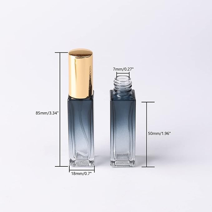 - Portable Perfume Bottle Size: The size of the glass bottle is about 8.5x1.8 cm. Capacity: 10 ml. This portable perfume bottle is perfect for everyday use