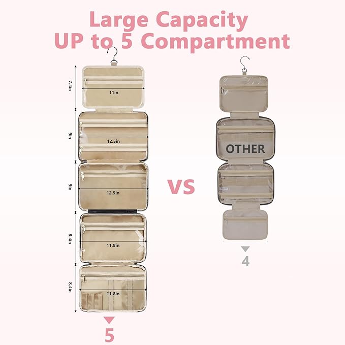 - Large 12.5 in x 9 in x 4.2 in capacity with separate compartments to organize toiletries and cosmetics