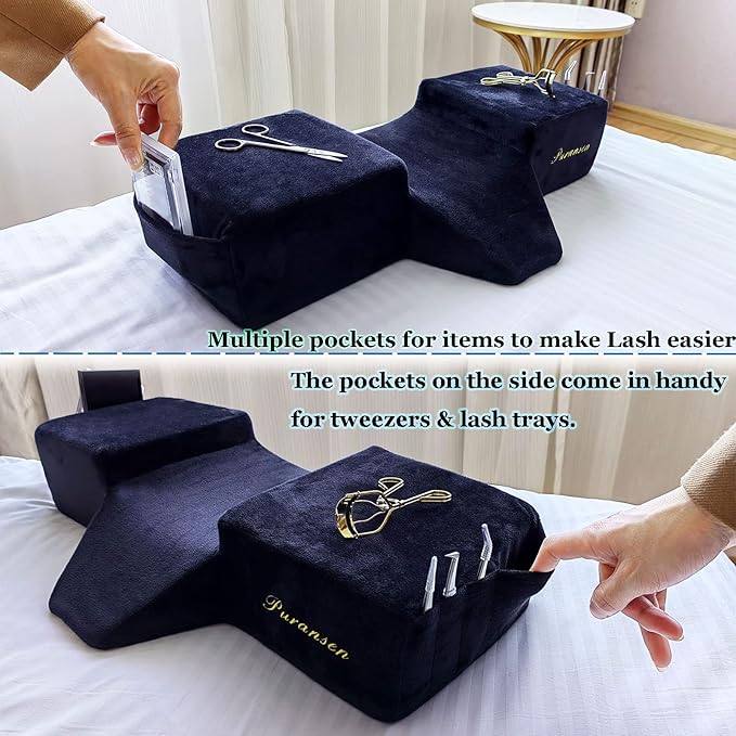 - BREATHABLE SOFT COVER WITH MULTIFUNCTIONAL POCKETS - Our soft velvet pillowcase is washable and removable. It comes with organizer pockets on each side to put tweezers and professional eyelash grafting tools. Convenient for you lash tech supplies and lash extension accessories within reach.