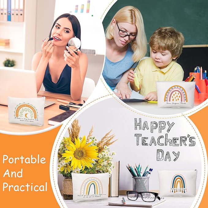 - Showing Your Appreciation: the teacher appreciation gifts are printed with motivational quotes, such as [Teaching is a work of heart], [Best teacher ever], [Love, Inspire, Teach], [Teachers plant seeds that grow forever], and so on, matching with various rainbow patterns on the toiletry pouches, helping you to show your appreciation and love to your teachers