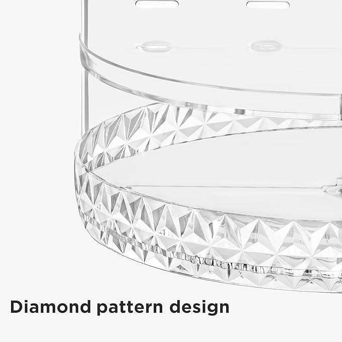 HBlife 360 Rotating Makeup Organizer Adjustable Carousel Diamond Large Capacity Revolving Perfume Organizer Skincare Organizers Cosmetic Storage Spinning Holder for Vanity, Plus Size Clear