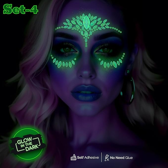 Face Gems Adhesive Glitter Jewel Tattoo Sticker Festival Gems Rave Party Body Make Up (GLOW IN THE DARK)