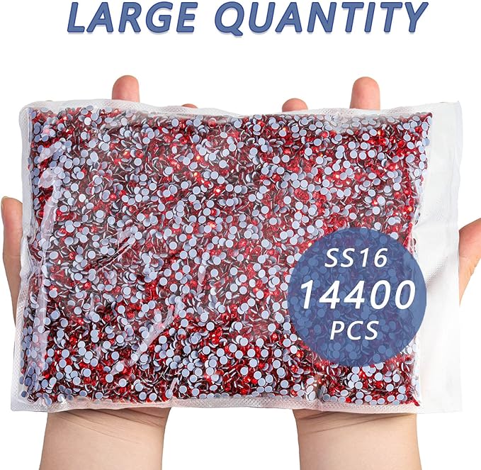 Beadsland Hotfix Rhinestones Bulk, 14400pcs Red Hot Fix Rhinestones for Crafts Clothes DIY Decoration, Light Siam, SS16, 3.8-4.0mm