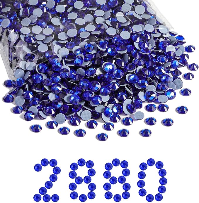 Beadsland Hotfix Rhinestones Bulk, 2880pcs Royal Blue Hot Fix Rhinestones for Crafts Clothes DIY Decoration, Sapphire, SS30, 6.3-6.5mm