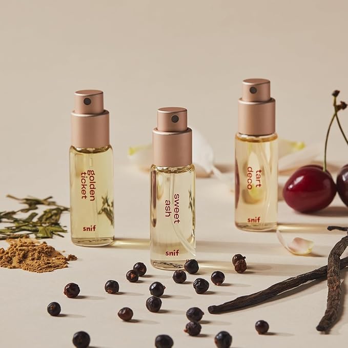 Snif Mini Bundle Perfume, Sweet Ash, Tart Deco, Golden Ticket, Cologne for Men and Women, Long Lasting Fine Fragrance, Non-Toxic, 3 pack