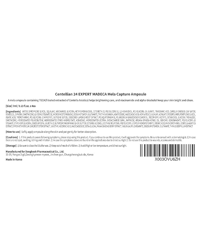 - CENTELLIAN 24 CAPTURE AMPOULE - Capture Ampoule by Centellian 24 is a potent premium solution that can help dramatically improve even blemishes and freckles while also promoting a healthier and even complexion. Visible improvement after just 5 consecutive days of application.