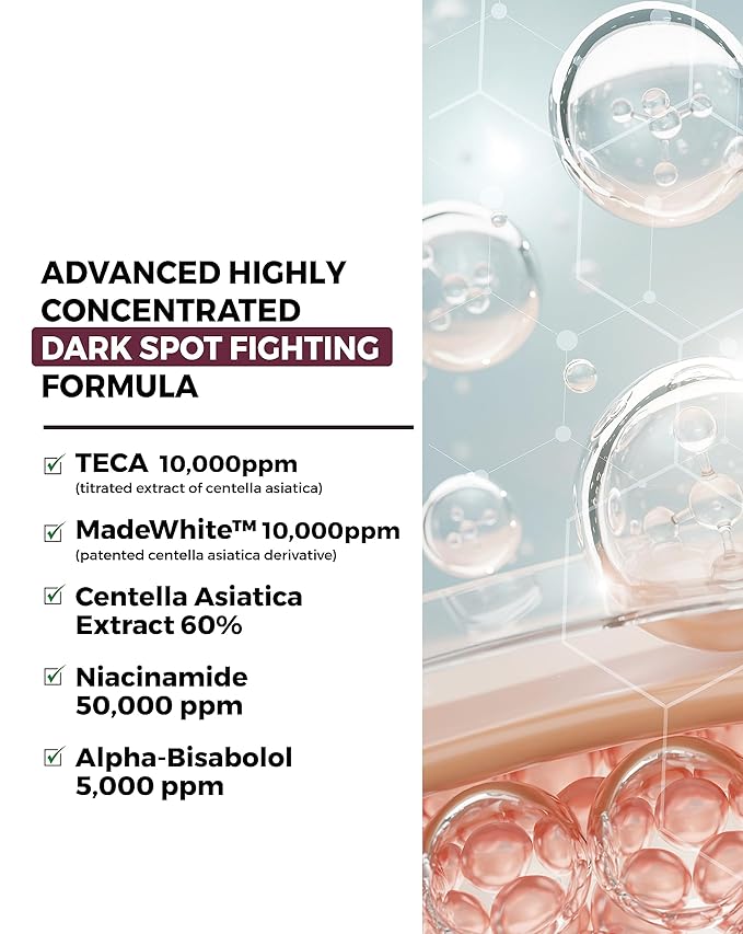 - HIGHLY CONCENTRATED - Each bottle is formulated with a highly concentrated blemish-treating ampoule containing 10,000 ppm of TECA (titrated extract of centella asiatica), the core ingredient of Dongkook Pharmaceutical's technology, 10,000 ppm of MadeWhite, and a patented ingredient derived from centella asiatica.