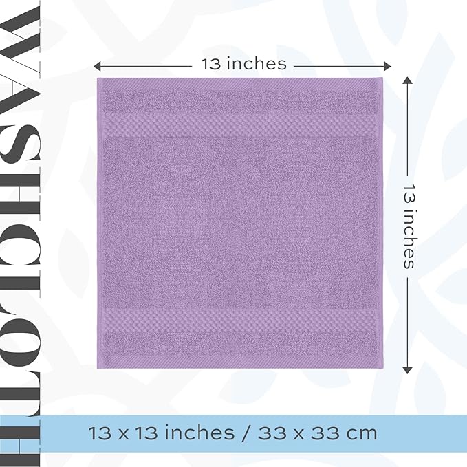 - HOTEL COLLECTION - 12-Piece Washcloths are generously Sized at 13x13 inches, plenty of room for comfortable lounging after a refreshing shower or relaxing soak. Each towel is 100% combed cotton - soft, durable, quick-dry, and wonderfully absorbent. It is more absorbent than any Turkish Cotton Towel.