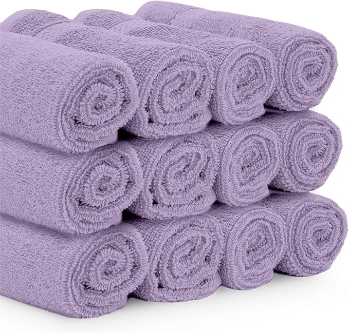 White Classic Luxury Washcloths for Bathroom-Hotel-Spa-Kitchen-Set - Circlet Egyptian Cotton - Highly Absorbent Hotel Quality Face Towels - Bulk Set of 12-13x13 Inch (Lavender)
