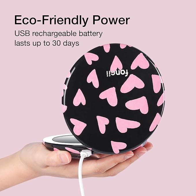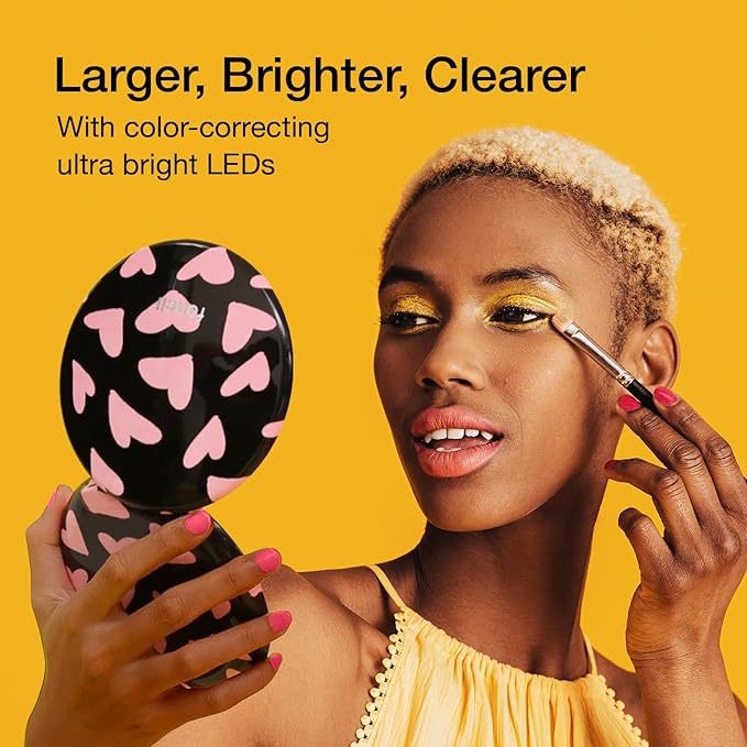 Fancii Taylor LED Lighted Travel Makeup Mirror, Rechargeable with 10x/1x Magnifying & 3 Light Settings - Compact, Portable, Large 5” Wide Hand Mirror for Handbag and Purses, Taylor (Love Train)