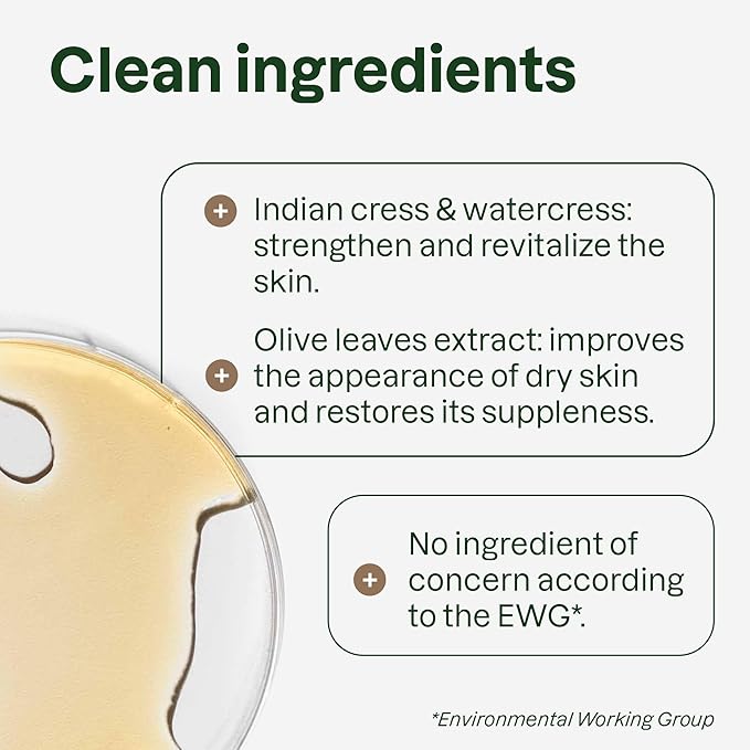 - NATURALLY SOURCED INGREDIENTS: Made with 98.9% naturally sourced ingredients* including an olive leaf extract that soothes dry skin and helps restore suppleness and firmness, as well as watercress and Indian cress extracts known to revitalize dry skin and restore the skin’s suppleness *According to ISO 16128 standards