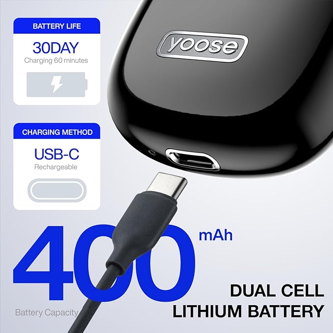 - 【Gentle and Close Shave】 Featuring a double-ring arc shaving head, the yoose mini portable shaver ensures gentle yet precise shaving. Its cambered blade units provide a skin-friendly shaving experience without irritation, while the floating design allows for a close shave. The German steel automatic grinding blade maintains sharpness for a comfortable and clean shave every time.
