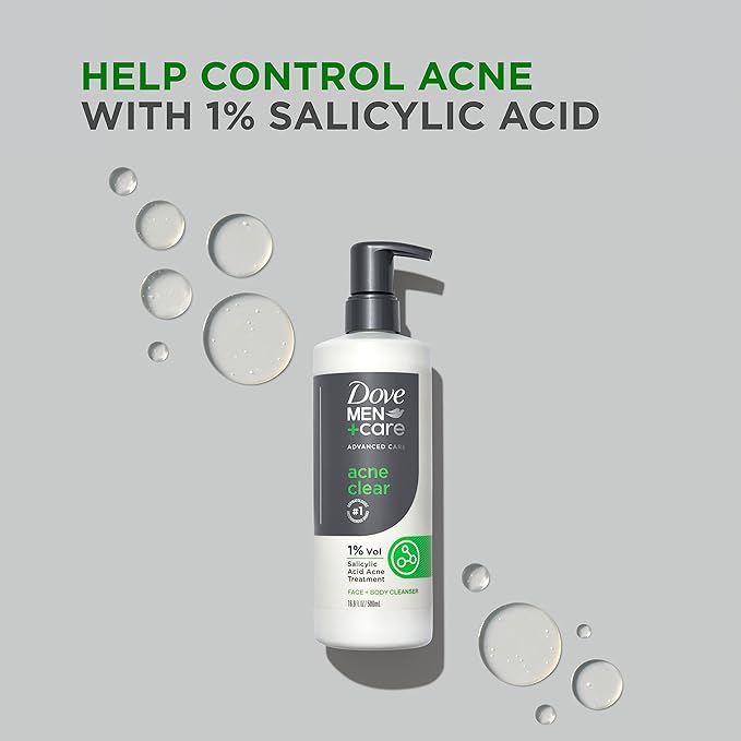 - ACNE TREATMENT: Dove Men+Care Advanced Care Acne Clear Face + Body Cleanser is specially formulated for acne treatment, as it penetrates pores to reduce the number of acne blemishes