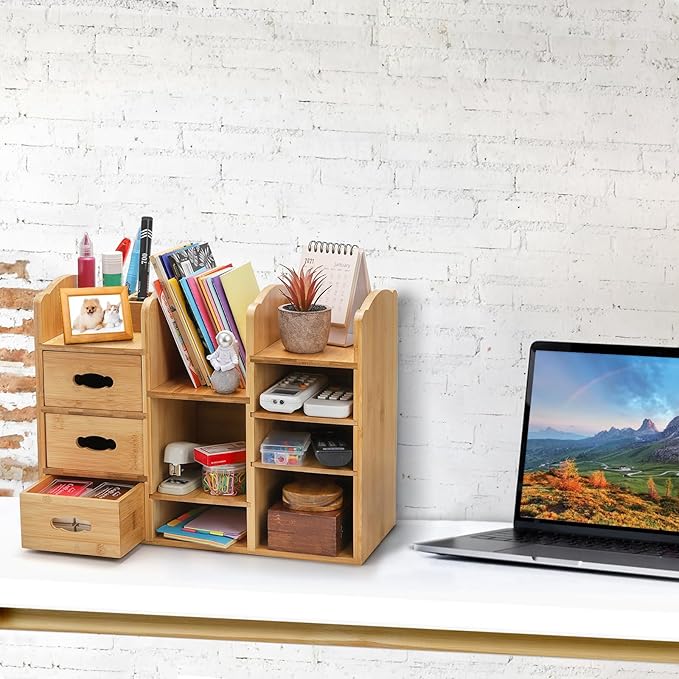 - Multifunctional Organizer: When put on the dresser, the bamboo organizer is perfect for storing makeup and beauty supplies, such as your lotions, lipsticks, perfumes, eyeshadows, and so on. It can also be used for keeping stationery, office supplies and other items.
