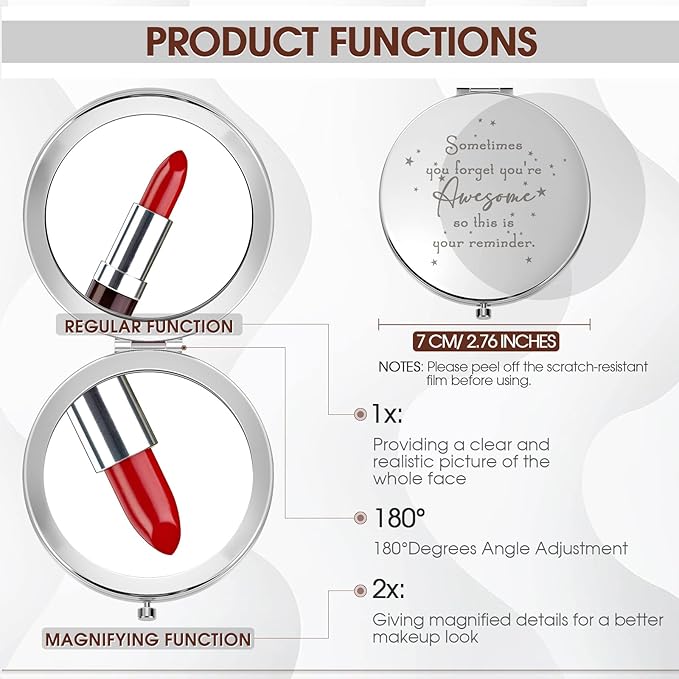 - Inspirational Quote Design: [sometimes you forget that you are awesome, so this is your reminder] the quote is printed on the back of the small mirror using laser technology to deliver positive power; Ideal women party favors for birthday, appreciation week, Mother's Day, secretary day, graduation, Christmas, etc.