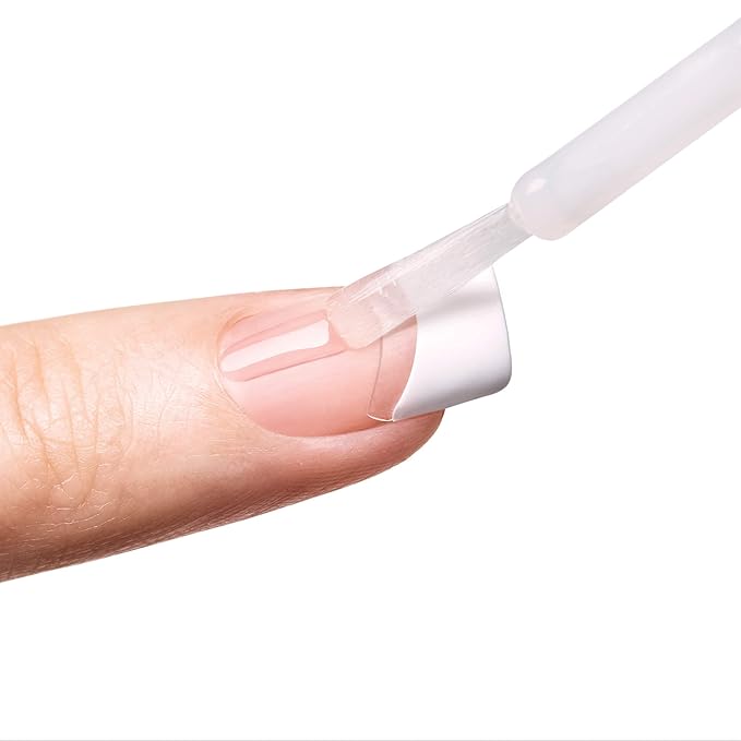 KISS Brush-On Gel Finish Fake Nail Kit French Manicure Set, 48 Short Length Square Shaped French & Natural Glue-On Nail Tips (Pack of 2)
