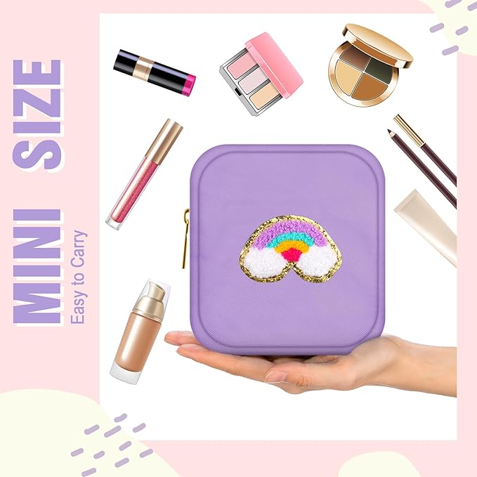 Sumind 12 Pcs Preppy Patch Cute Makeup Bag Travel Cosmetic Toiletry Chenille Skincare Bag Portable Nylon Organizer Storage Purse Small Zipper Makeup Pouch Daily Use Storage Purse for Women Girls Gift
