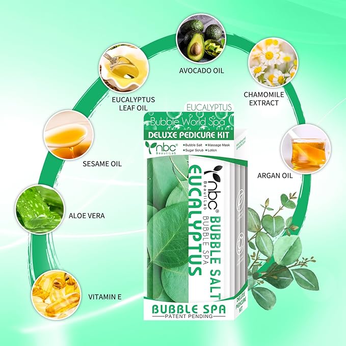 Pedicure Kit Foot Soak Set: Bubble Salt, Sugar Scrub, Massage Mask, Massage Lotion in a Box, 4 Step Foot Spa Kit for Dry Feet,Tired Feet(3 Set Eucalyptus)