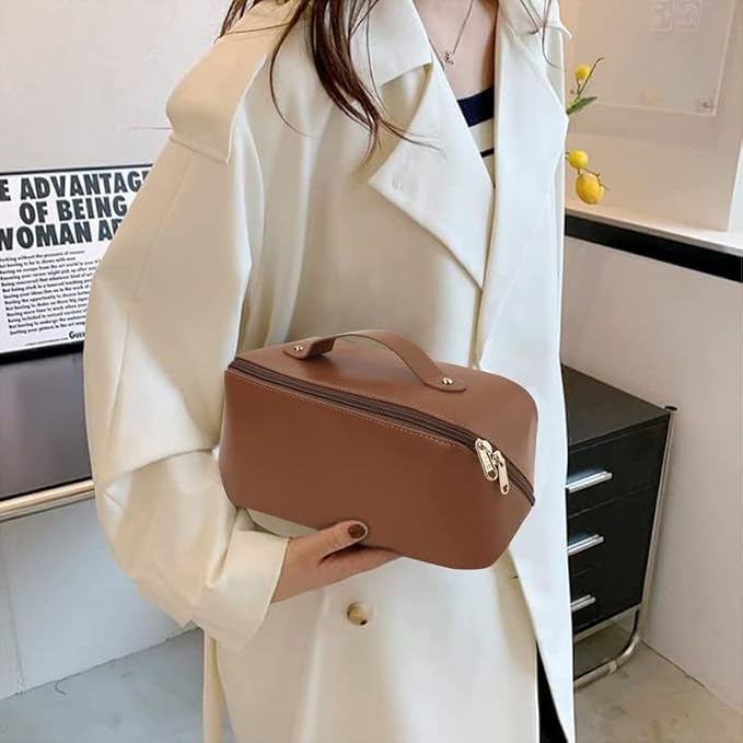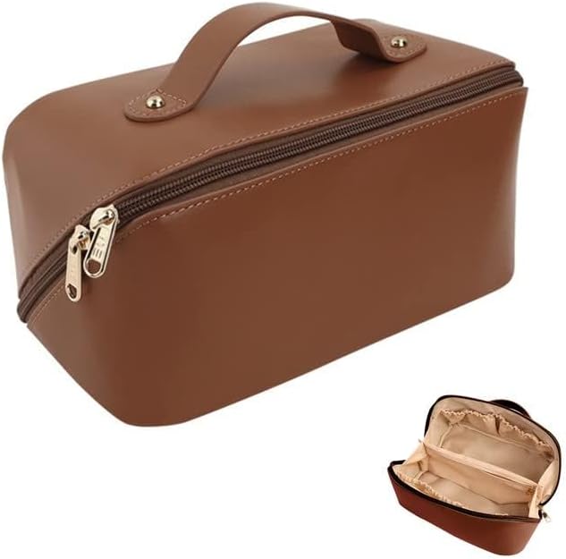 Large Capacity Waterproof Travel Cosmetic Bag - PU Leather - Brown Light