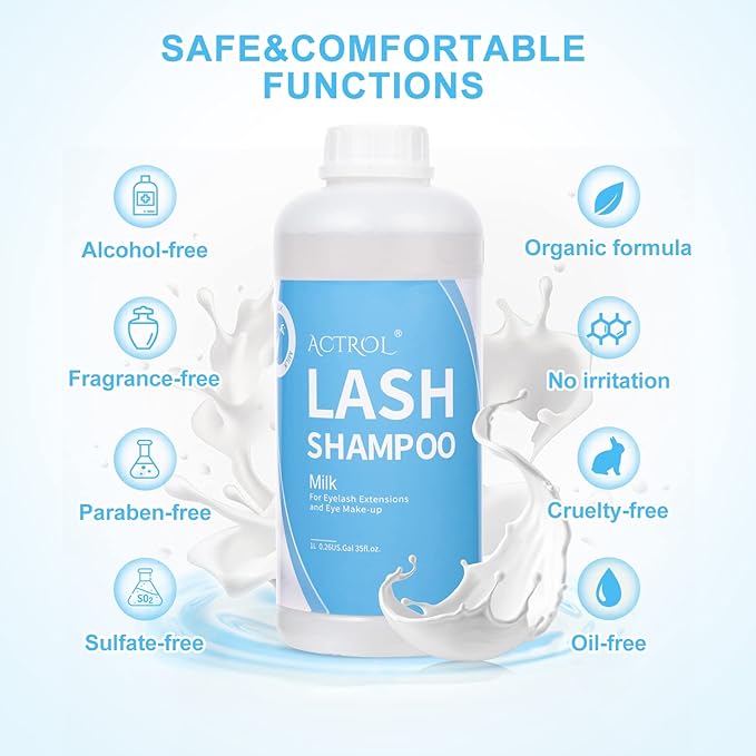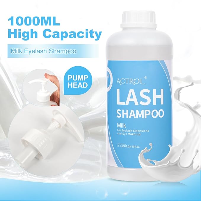 Eyelash Extension Cleanser Milk 1L Natural Lash Extension Shampoo Professional Eyelid Foaming Cleanser Paraben & Sulfate Free Non-lrritating with Salon and Home Care