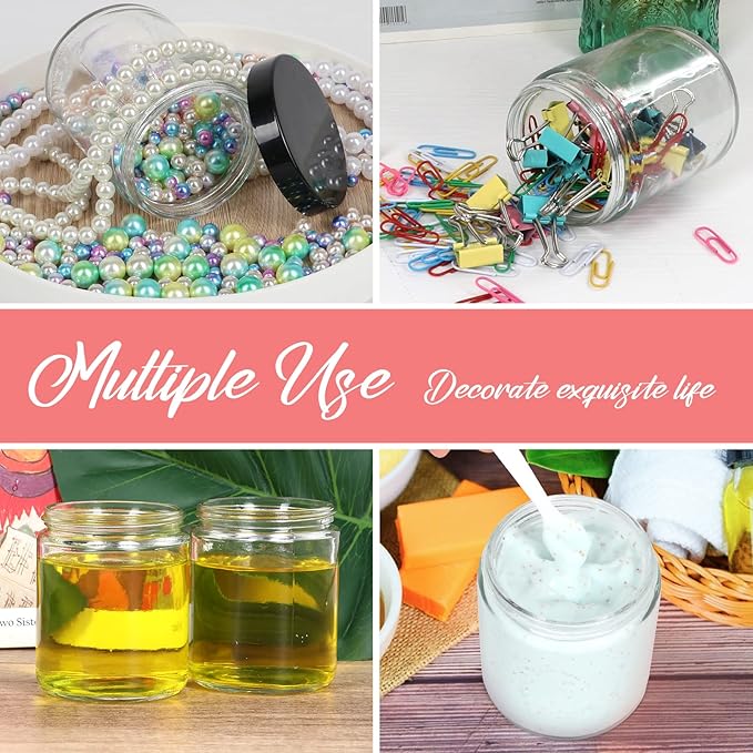 - Multipurpose: You can use them to store powdered spices and foods, solids or liquids such as soy, spices, salt, pepper storage, glass baby food storage, candle making, creams, lotions, oils, ointments and other cosmetics and more