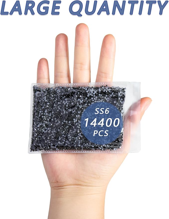 Beadsland Hotfix Rhinestones Bulk, 14400PCS Crystal Hot Fix Rhinestones for Crafts Clothes DIY Decoration, Black, SS6, 1.9-2.1mm