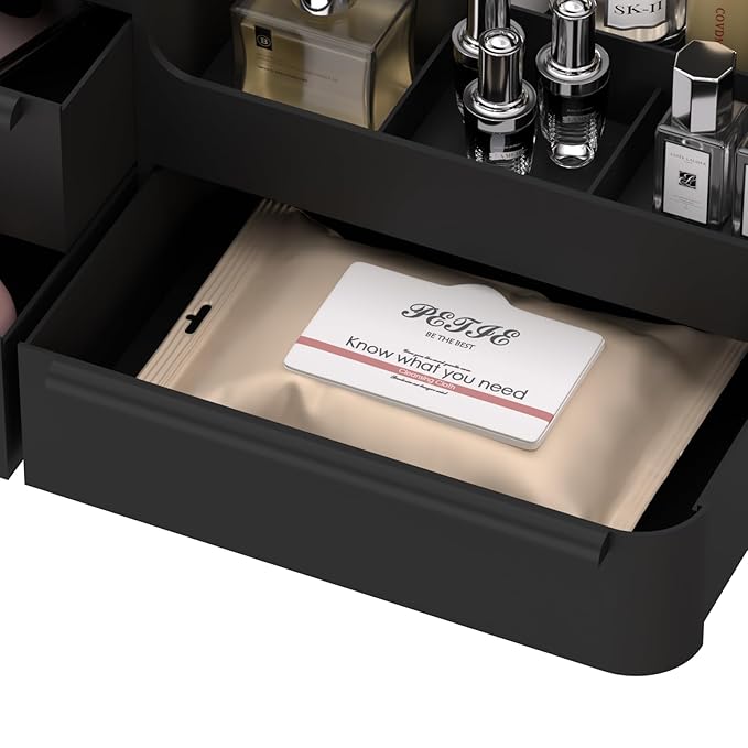 - 【CUSTOMIZED STACKABLE】 Makeup organizers can be Stackable with our drawer organizer to create their own unique combination, or they can be used alone. Keep your counter/bedroom tidy, perfect for dorms and apartments with limited space, space saving. Have all your daily makeup essential items neat.