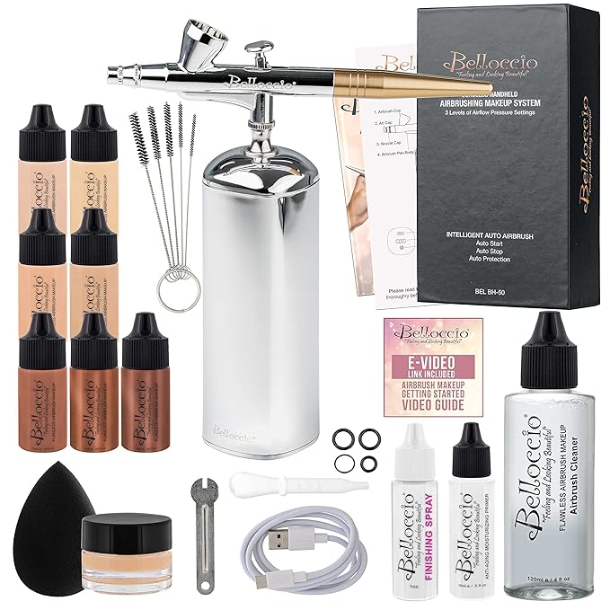- The hygienic airbrushing application means makeup never touches the hands, brushes, or sponges, eliminating makeup contamination. Belloccio's airbrush makeup is made in the USA. The system includes an online link to Belloccios airbrush makeup tutorials and informational videos. Buy with Confidence: Backed by a trusted brand dedicated to your satisfaction, we ensure a hassle-free experience every time.